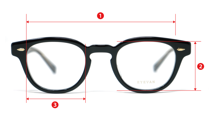 Width of the entire frame: The width from the inside to the inside of the left and right temples.